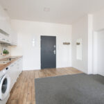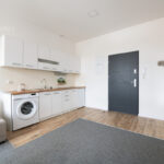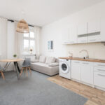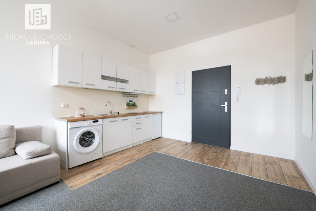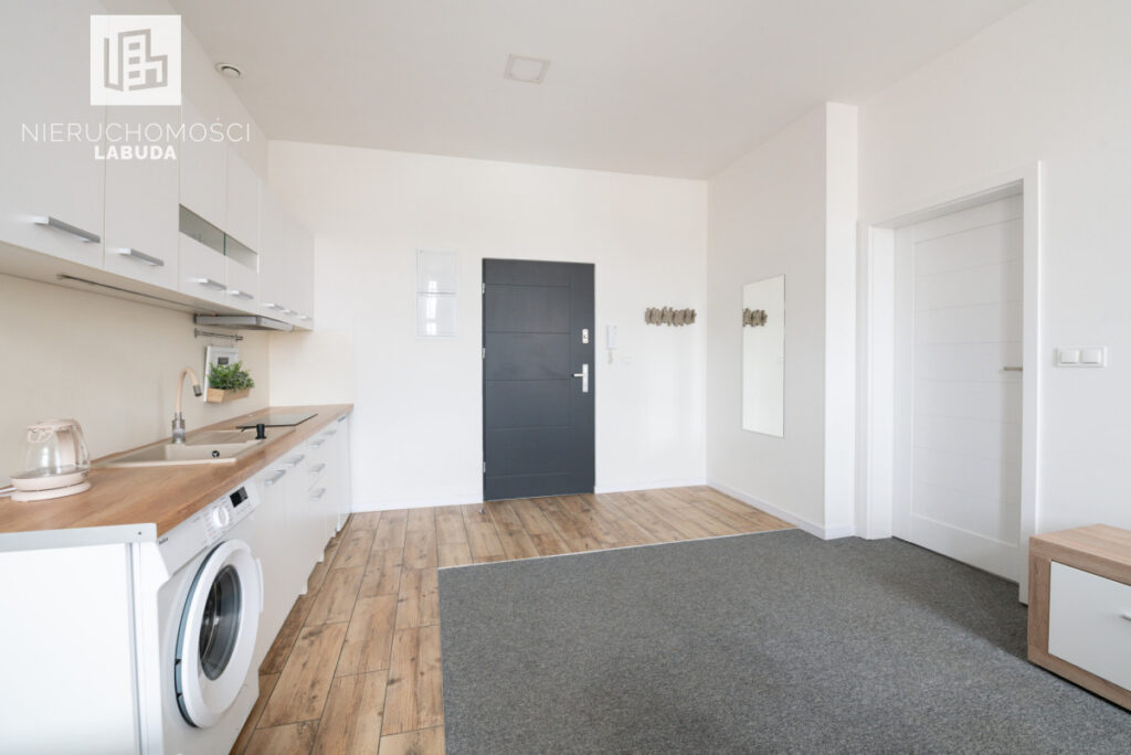Kuchnia w zabudowie wyposażona jest w lodówkę oraz płytę indukcyjną - lokal jest w pełni przygotowany do zamieszkania lub wynajmu od pierwszego dnia.