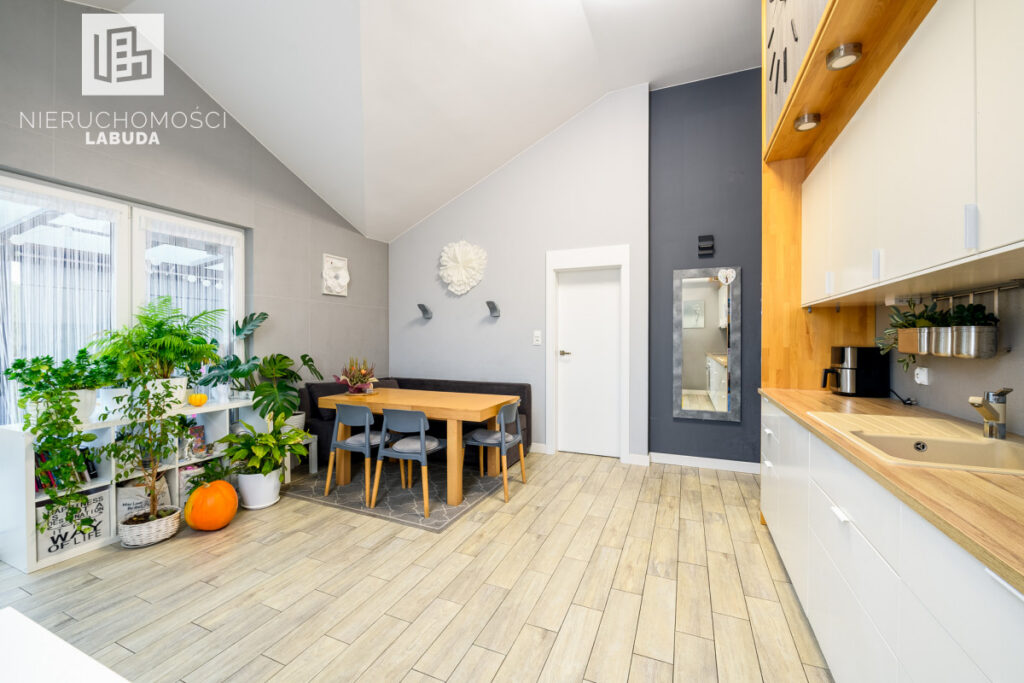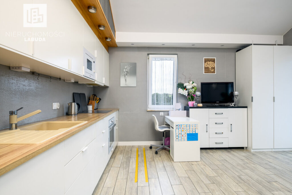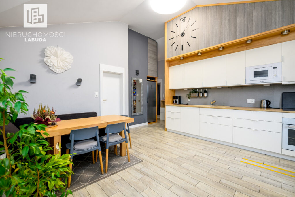 - dwa poziomy z pełną funkcjonalnością (2 kuchnie, 2 łazienki)