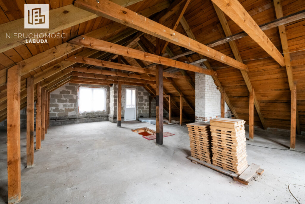• poddasze ok. 35 m² powierzchni użytkowej (ok. 58 m² po podłodze) - do adaptacji