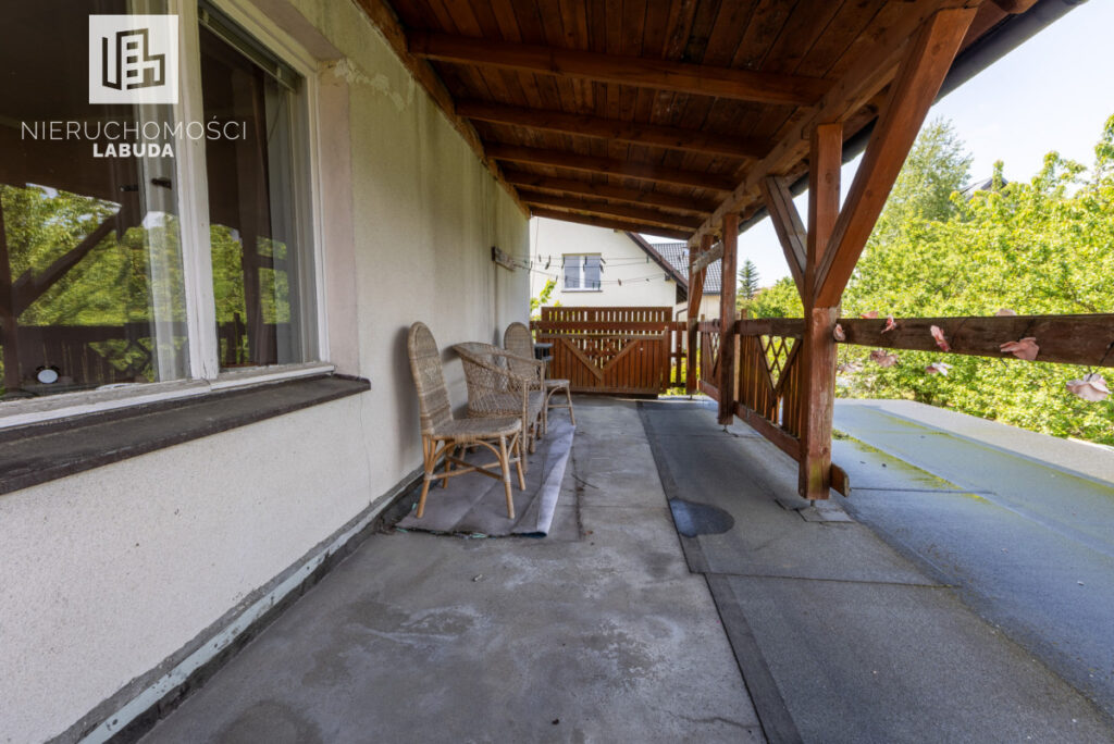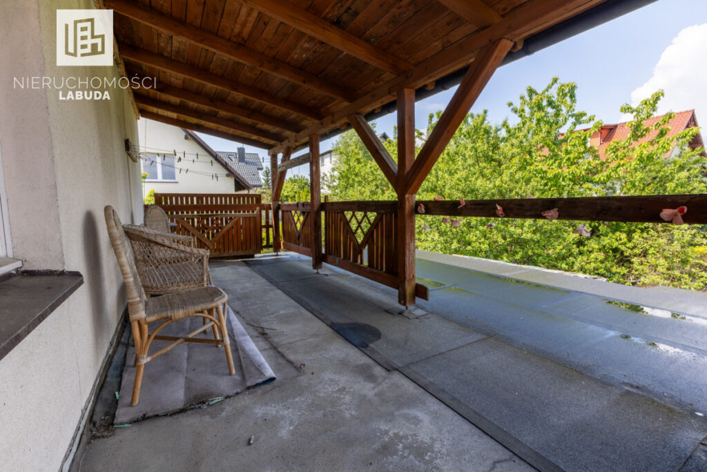 Komfortowe rozmieszczenie pomieszczeń oraz zadaszony taras z widokiem na ogród sprawiają, że to idealne miejsce do życia i pracy.