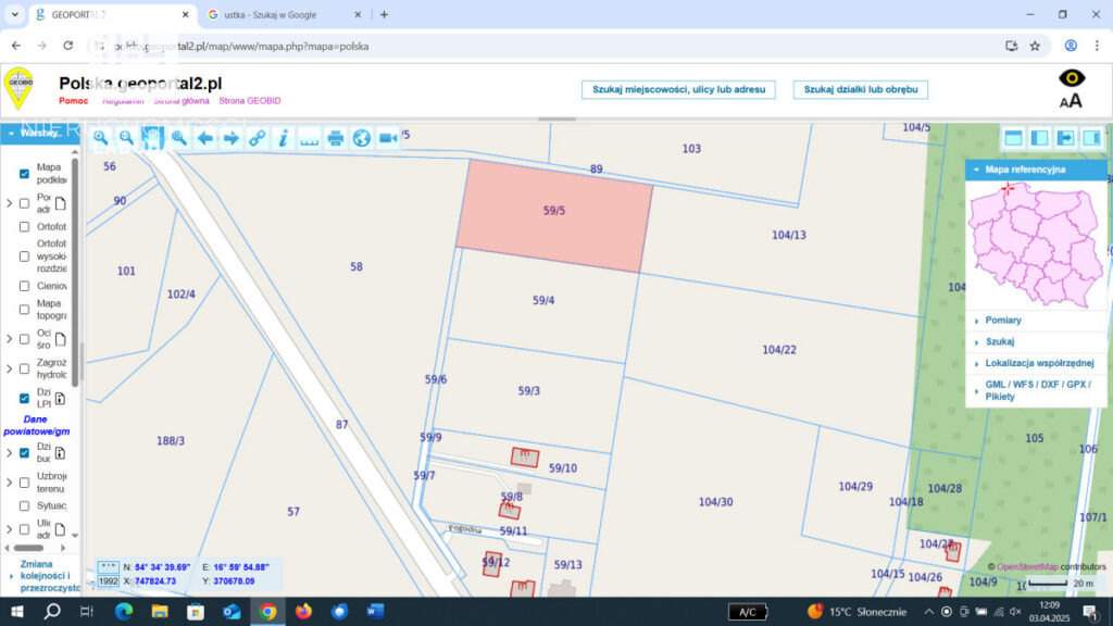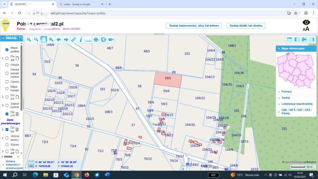Działka znajduje się w urokliwej miejscowości Machowinko k/Ustki, co czyni ją idealnym miejscem na wypoczynek lub inwestycję. Do plaży Orzechowo można dojechać samochodem w około 11 minut (9,9 km), a rowerem w około 22 minuty. Poddąbie jest jeszcze bliżej - tylko 8 minut samochodem (4,4 km) i 13 minut rowerem. Najspokojniejsza plaża jest w zasięgu 10 minut jazdy samochodem, a port Ustka oddalony jest o 17 minut jazdy (12,5 km).