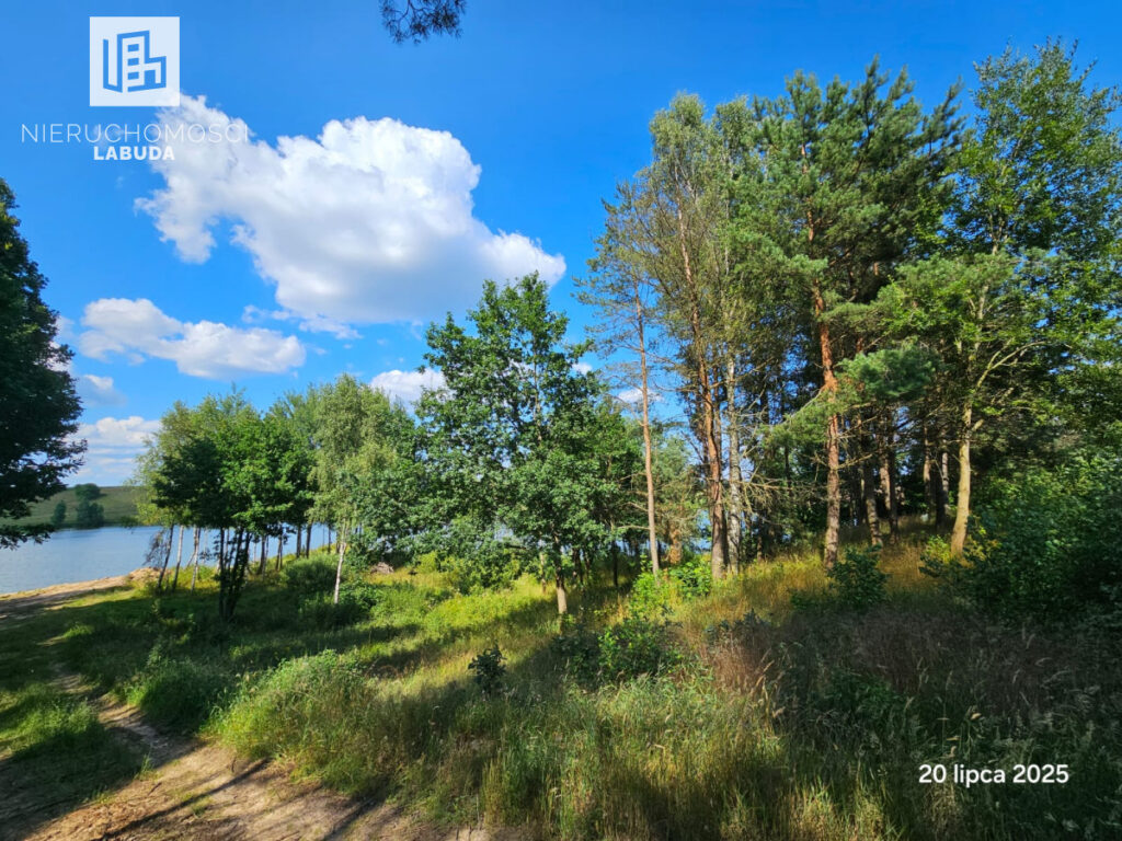 Działka nad jeziorem z linią brzegową