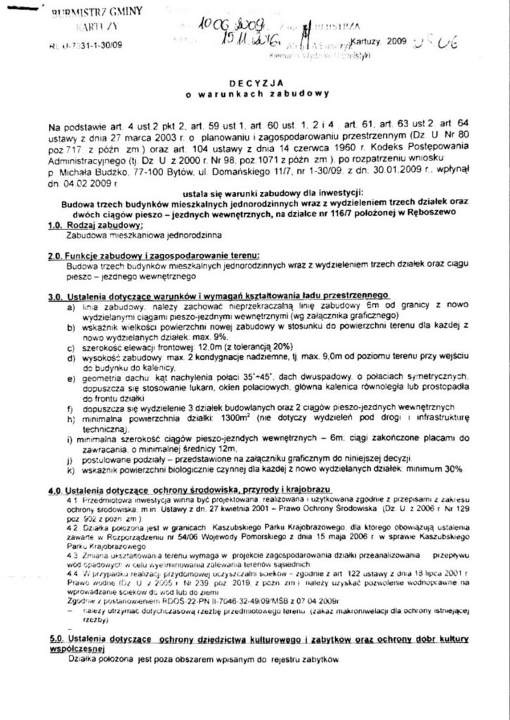 dopuszczalna zabudowa: do 2 kondygnacji nadziemnych, wysokość do 9 m,