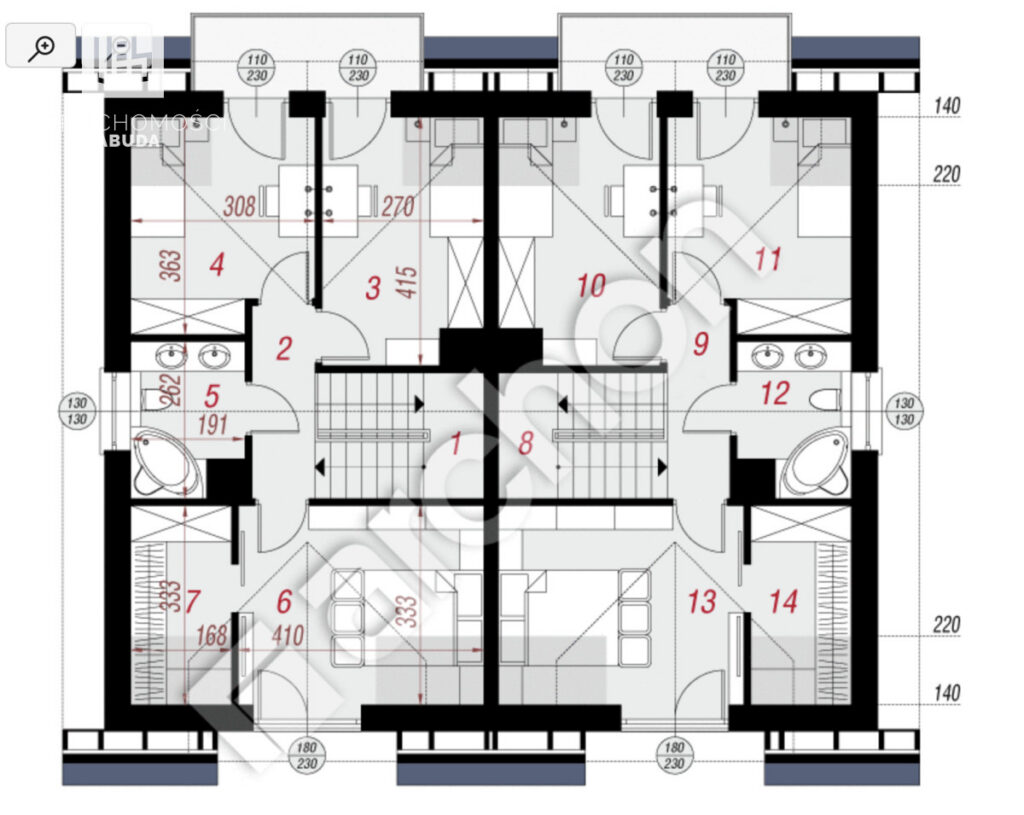 • Ściany zewnętrzne z pustaka ceramicznego, ocieplone styropianem grafitowym (20 cm).
