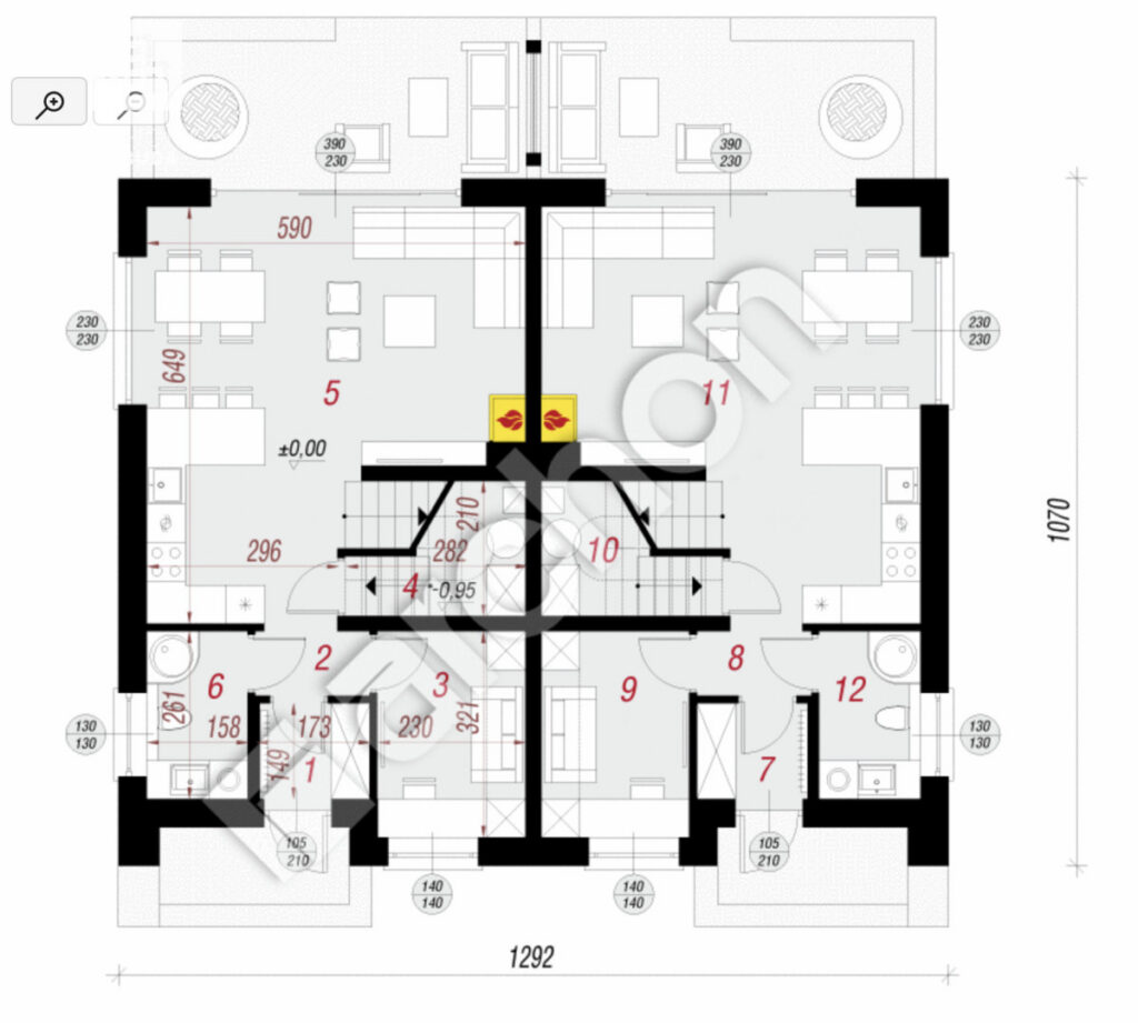 Dom został zaprojektowany w sposób maksymalizujący funkcjonalność i wygodę mieszkańców.