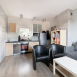 - Cztery mieszkania typu kawalerka (otwarta przestrzeń z aneksem kuchennym i łazienką)