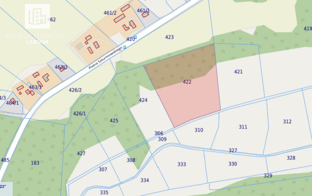 Działka mieszkaniowo-usługowa – bliźniak- 1464 m²