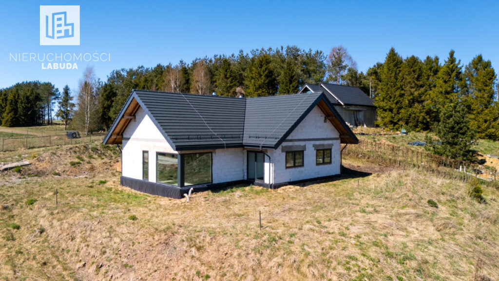 Parterowy dom na wzgórzu z widokiem na jezioro